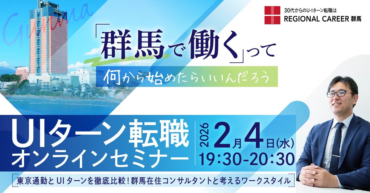 セミナー【オンライン開催】東京通勤とUIターンを徹底比較!群馬在住コンサルタントと考えるワークスタイル/2月4日(水)19:30開始